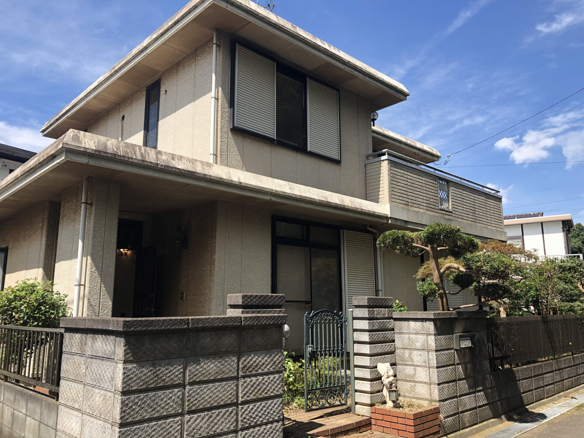 ベージュの外壁と破風は新築時から1度も塗り替えられず、全体的に汚れがこべり付いていました。