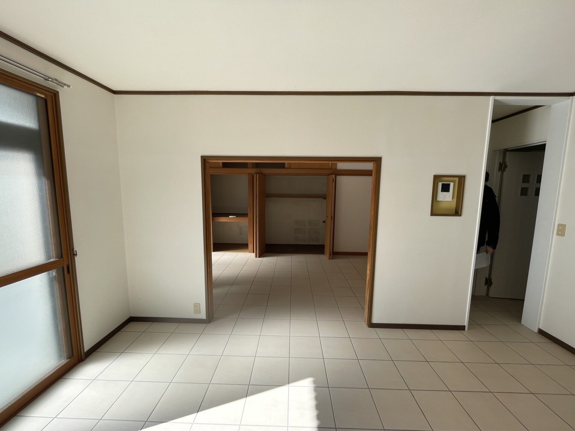 過去のリフォームで和室とリビングの床を繋げたため統一感が出ておりますが、元々は引戸で仕切っていたため間口が狭いです。